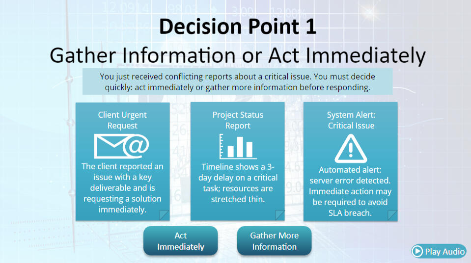 Instructional Assets and Activities: Develops case studies, assessments, and exercises that turn knowledge into measurable learning outcomes.